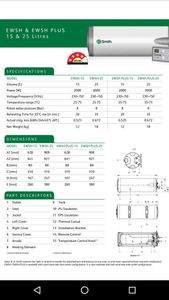 AO Smith EWSH Plus 15 Litres 2KW Storage Water Heater Specifications