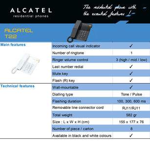 Alcatel T22 Corded Landline Phone Specifications