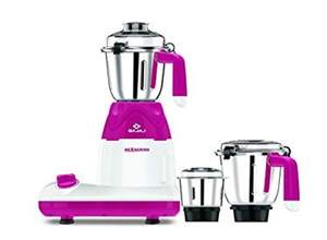 | feature | Powerful 600 watt, 100 percent copper high performance motor3 jars - liquidizing jar (1.5 litre), dry grinding jar (1 litre), chutney jar (0.3 litre)Tetra flow technology- flow breakers on jars to ensure even mixing and grindingSS 304 grade blades - superior stainless steel blades for longer useDo not worry if you experience some burning smell when you run your mixer grinder for the 1st timeWarranty: 2 years on productPower: 600 wattsIncludes: Mixer Grinder with 3 Jars |