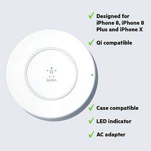 BIS certified to work safely and efficiently with Indian AC Power supply ( Includes India AC Power Adapter )Suitable for Apple iPhone 8/8 Plus and iPhone X/Samsung Galaxy S9+/S9 and Other Qi-Enabled Devices, Qi-certified charging pad delivers charge to your phone wirelesslyCable-free charger: Simply place your iPhone X, iPhone 8 Plus or iPhone 8 on the non-slip charging surface for wirelessly fast charging with up to 7.5 WCase compatibility and safety: Charges through most lightweight phone case |