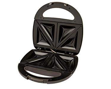 Two slice fixed sandwich makerIndication lights for power on and offNon-stick coating plateThermostat controlledFuse for over heat protectionCool touch handleWarranty: 1 year warranty provided by the manufacturer from date of purchasePower: 750 watts; Operating Voltage: 220 - 240 voltsIncludes: Sandwich Maker, User Manual with Warranty Card |