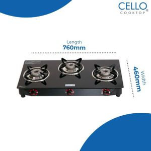 Cello Gem Glass Manual Gas Stove (3 Burners)