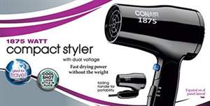 Conair 1875 Watt Compact Styler With Dual Voltage Specifications