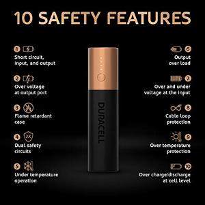 | feature | 3350mAH lithium-ion batteryUp to 24 hours extra of talk or surf time (hours of time and number of charges are estimated by comparing the iPhone 7 internal batteries specification on apple to the internal batteries of Duracell Powerbank; Results will vary by device and conditions)Dual charge technology for simultaneous charge of the power bank and a phone or other USB-powered deviceUp to 1.7 charges for iPhone 7 (hours of time and number of charges are estimated by comparing the iPhone 7 internal |