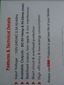 ERD TC-27 2A USB Wall Charger Specifications