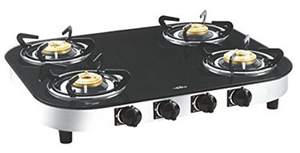 Finish : Stainless Steel + GlassDimensions (W X D) in mm : 640 x 510Ignition : Battery Operated Auto Ignition (AI) / Non Auto IgnitionGrids : Round Enameled | Burner : BrassBurner : 1 Large + 1 Medium + 1 Small Burner |