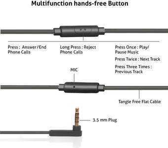 In-Line Mic, Play, Pause, Track Change, Call Pick Up and Reject |