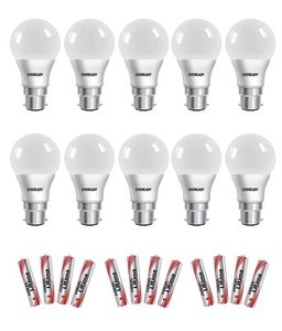 Eveready 9W B22 100L LED Bulb With Free Battery (White, Pack Of 10)