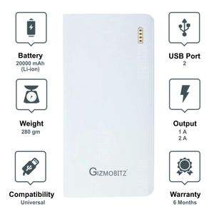 Gizmobitz R Sense 6 20000mAh Power Bank Specifications