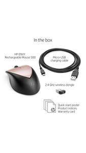 | In Sales Package | HP ENVY Rechargeable Mouse 500; Micro-USB charging cable; 2.4 GHz wireless dongle; Quick Start poster; Product