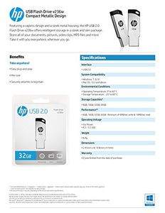 HP V236W 16GB USB 2.0 Pendrive Specifications