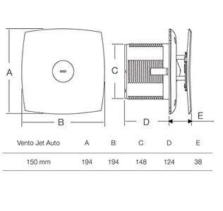 Havells Vento Jet15 6 Balde (150mm) Auto Exhaust Fan Specifications