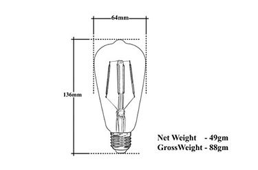 | feature | Imperial 4 Watt E27 Led Bulb In Traditional Tungsten Filament Bulb Style. Imperial-LED Official Authorize Online Selling Partner is "UV Group".High Quality Led, Life Upto 30,000 Hours, Warm White (2700k).High CRI >80, Beam Angle 360° Giving Light In All Directions.Full Glass Shell, Voltage - 220V.(Non Dimmable)The Product Comes With 1 YEAR WARRANTY, Warranty is only Valid if bought from "UV Group". No warranty if bought from any other sellers as the product would be a duplicate and will not be |