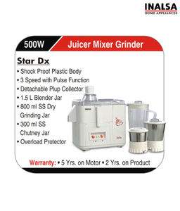 Inalsa Star Dx 3 Jars 500W Juicer Mixer Grinder Specifications