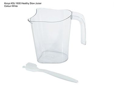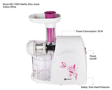Model No.: KSJ 1600; Type: Healthy Slow JuicerColour: White; Blade Material: ABS PlasticFunctions: Juicing; Juicer Jar: YesPower Consumption: 50 W; Package Contents: 1 Main Unit, Warranty CardWarranty: 1 Year Manufacturer Warranty; Customer Care Email ID: feedback@Koryoworld.com; Customer Care Number: 1800 425 7722 |