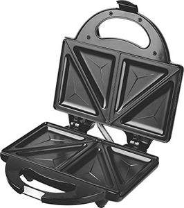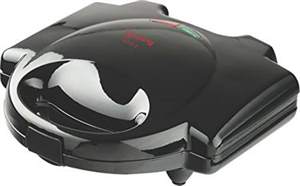 | feature | Non-stick plates provide a healthy low fat sandwichGrill Sandwich: Hinged lock for well grilled sandwichesLight Indicators: Red for power/heater; green for grill ready or cut offSkid resistant feetEasy to cleanWarranty: 1 year on productPower: 750 watts; Operating Voltage: 220 - 240 voltsIncludes: Sandwich maker and User manual |