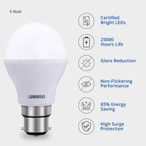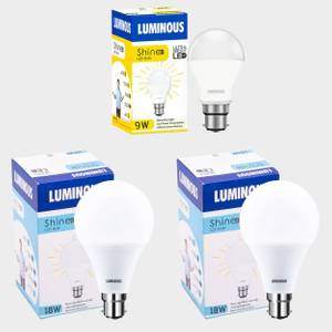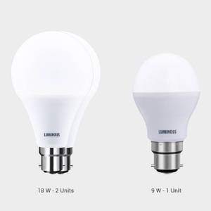 Luminous 18W (Pack of 2 ), 9W (Pack of 1) Round B22 LED Bulb (White)