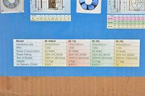 Newtek KE-20ALD 200mm Ventilating Fan Specifications