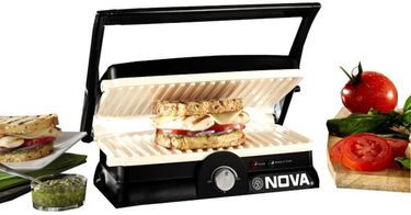 Griddling, Preparing a tasty breakfast or supper can be easy and fun with this 3 in panini grill from Nova. Whether you have guests coming over or want to have a quick snack after a tiring day at work, quickly make delectable sandwiches in this handy unit.The plates of this sandwich maker are coated with the non-stick Teflon coating which prevents food from sticking to their surface. It also needs less oil or fat for cooking.You can toast a bread to make it crispy and brown or make tasty tikkas |