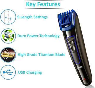 | Features | 9 length settings, Titanium coated blades, Usb charging, 45 mins run time, 0.5 mm precision cut |