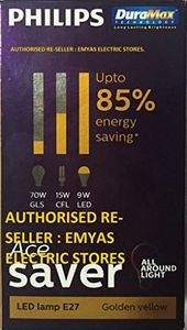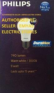 feature Pack of 6Warranty: 1 year on product from date of invoiceWattage: 9 watts; Operating Voltage: 220-240 voltsIncludes: 6 LED BulbsLow energy consumption and non-dimmableLifetime of 15,000 hours and UV and IR free lightUp to 40 percent energy saving (compared to CFL)Up to 85 percent energy saving (compared to GLS)