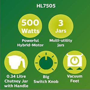 Philips HL-7505 500W Mixer Grinder (3 Jars) Specifications