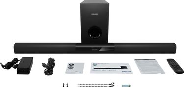| Other Features | Total Power RMS at 10% THD: 120 W, Integrated Connections: Bluetooth, Rear Connections: Digital Coaxial-in, Digital Optical-in, Subwoofer-out, Aux-in, HDMI 1.4 Output (ARC), Top Connections: Audio-in (3.5 mm), USB 2.0, Design: Wall Mountable, Standby Power Consumption: 0.5 W, Convenience: Easy Link ...View More Total Power RMS at 10% THD: 120 W, Integrated Connections: Bluetooth, Rear Connections: Di |