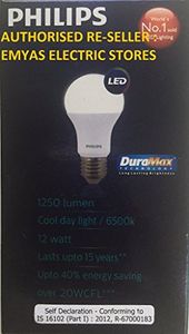 Pack of 3Warranty: 1 year on product from date of invoiceWattage: 12 watts; Operating Voltage: 220-240 voltsIncludes: 3 LED BulbsLow energy consumption and non-dimmableLifetime of 15,000 hours and UV and IR free lightUp to 40 percent energy saving (compared to CFL)Up to 85 percent energy saving (compared to GLS) |