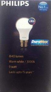 Model Number PHILIPS 9W B22 WARM/WHITE (YELLOW) PACK OF-10
