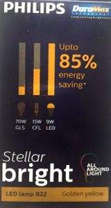 Philips Stellar Bright 9W B22 LED Bulb (Yellow, Pack Of 10) Specifications