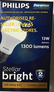 Philips Stellar Bright E27 13W 1300 Lumens LED Bulb (Warm White, Pack of 8) Share on