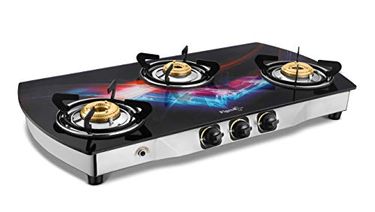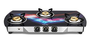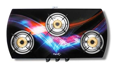 Pigeon Oval Spark Auto Glitter Glass Top 3 Burner Gas Stove