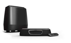 2.1-channel system; compact sound bar has 6 built-in speakers Four 2-1/4" drivers and two 1/2" tweeters Separate wireless subwoofer with 6-1/2" driver built-in Wi-Fi®, Bluetooth®, and Google Cast for wireless music streaming from compatible smartphones, tablets, and computers Polk VoiceAdjustTM technology helps keep dialogue intelligible Dolby® Digital decodingThree listening modes: Movie, Music, and Sports Universal remote control learns commands from IR remotes for TVs, satellite receivers, |