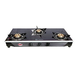 Heavy Pan Support. Strong Frame of 0.7mm. Individual pan supports for easy cleaning. 2 Years Full Warranty On Glass Stove Including Glass.Most of the models are with 8mm glass. Package Contents: 1-Piece Gas Stove.Heavy Duty Brass Burners. Easy to clean and maintain with spill-proof design. Manual ignition for ease to use.Material Black powder coated body. Also Available in Stainless Steel Body. |