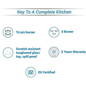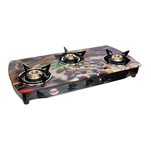 Heavy Pan Support. Strong Frame of 0.7mm. Individual pan supports for easy cleaning. 2 Years Full Warranty On Glass Stove Including Glass.Most of the models are with 8mm glass. Package Contents: 1-Piece Gas Stove.Heavy Duty Brass Burners. Easy to clean and maintain with spill-proof design. Manual ignition for ease to use.Material Black powder coated body. Also Available in Stainless Steel Body. |