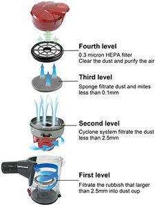 | feature | Professional 800 W Multi Cyclone System for no loss of suction and creating strong 16KPA suction force to quickly clean the home interiorFour Level Filtration System with Easily Removable & Washable Dust Cup, HEPA Filter and Sponge FilterLow Noise and Light WeightAccessories: Main Floor Brush, Telescopic Extension Tube & Crevice Nozzle Brush connector to clean away dust and reach all corners of home |