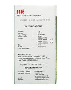 Wattage : 7Warranty : 2 Years working warrantyEnergy Saving : 90 %Made in IndiaQuality : Very High |