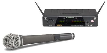 Single AAA battery operation allows up to 14 hours of life for AX1 Includes Samson Q7 dynamic microphone True diversity UHF wireless handheld system with PLL frequency control CR77 receiver features multi-segment audio level and RF level LED meters Squelch and volume control XLR and unbalanced 1/4-inch outputs with mic/line level output switch AC adapter and 1/4-inch to 1/4-inch cable included |