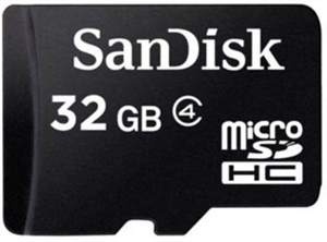SanDisk 32GB MicroSDHC Class 4 (4MB/s) Memory Card Specifications