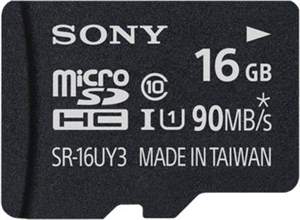 Sony 16GB MicroSDHC Class 10 (90MB/s) UHS-I Memory Card (With Adapter) Specifications