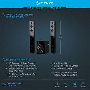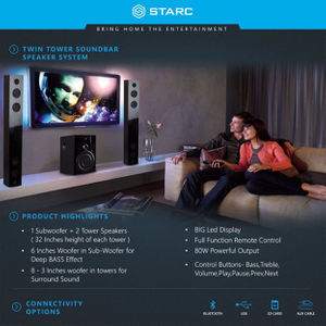 | Model Name | SB34 Twin tower Soundbar with Bluetooth,USB,AUX-IN,FM Radio |