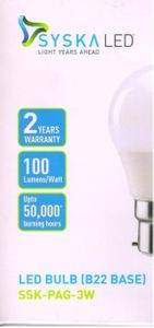 Syska 3 W B22 LED Bulb (Yellow, Pack Of 2) Specifications