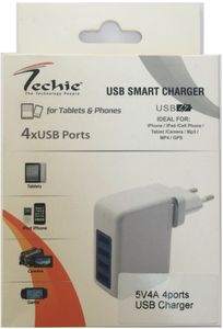 Techie 4A 4 USB Port Wall Charger Specifications