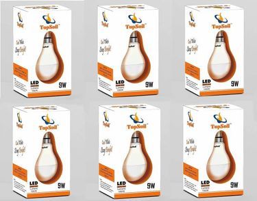 TopSoil 9W Standard B22 LED Bulb (White, Pack of 6)