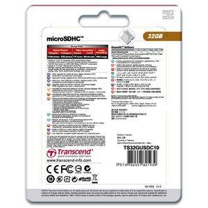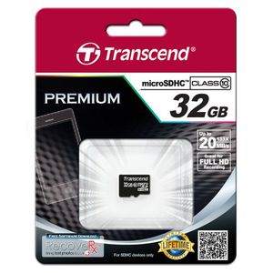Transcend Premium 133x 32GB MicroSDHC Class 10 (20MB/s) Memory Card Specifications