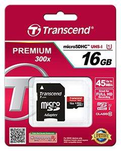 Transcend Premium 300x 16GB MicroSDHC Class 10 UHS-1 (45MB/s) Memory Card (With Adapter) Specifications