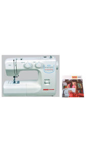 This machine has 14 built in-stitches and 7 applications of which the main ones are - stretch stitching, four step button holing, button fixing, rolled hemming, blind stitch hemming, zip fixing., This machine is lightweight and comes with a carrying handle. , This machine has a colour coded functional face plate and two dials for pattern and stitch length selection., This is a free arm machine which allows for circular stitching. |