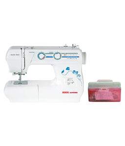 Automatic light weight full zig-zag machine with 34 stitch functions, separate attachment for button holing, colour coded functional face plate and two dials for pattern and stitch length selection, drop feed mechanism for easy embroidery. |