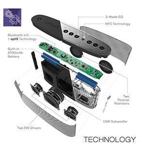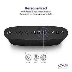 | feature | Strong bass: With Two 5W drivers, 10W subwoofer, and two passive radiators, the VAVA VOOM produces the most powerful and dynamic volume, plus aptX audio coding paired with Bluetooth 4.0 connectivity for premium CD-quality audio experience. The bass performance from the powerful subwoofer in the special "surround" mode is the BEST in its class.3 EQ modes: With unparalleled three EQ modes (others have NO mode), the VAVA Voom modes (Classic, Party & Surround) enhance any music style and occasion.10 |