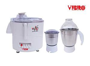 | feature | Power: 450 WattShock proof ABS bodyWarranty: 2 YearsWHAT YOU GET: 1 X Vibro juicer, 1 X Stainless Steel Blender Jar (Large), 1 X Stainless Steel Grinder and 1 X Manual. Tips: Please follow the manual for normal useRelish your Shakes and Juices. It's easy to get juicing - just insert the strainer and lock on the lid with the clips, and add the pulp bin. Juice apples, carrots, oranges, berries, celery, pineapple, cucumbers, spinach, grapes, pears, lemons, kale, ginger root, beets, tomatoes, and |